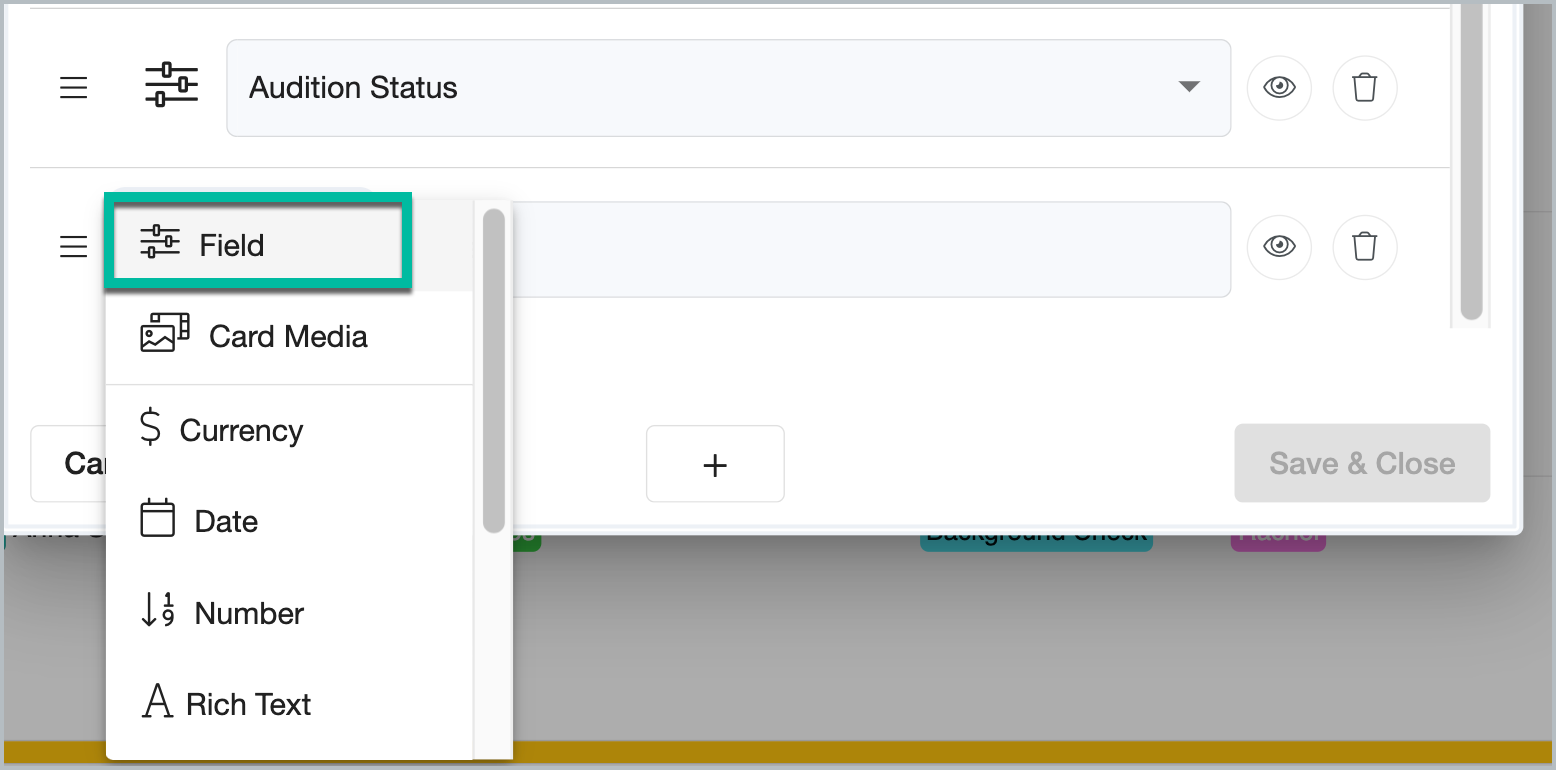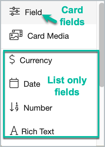 Then select the Field you want to add as a column. Note, the drop-down menu will show all available Fields in the Project, so some may not be on the Cards you are adding to the List.