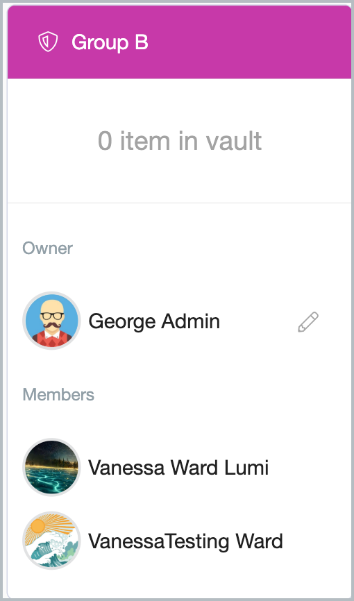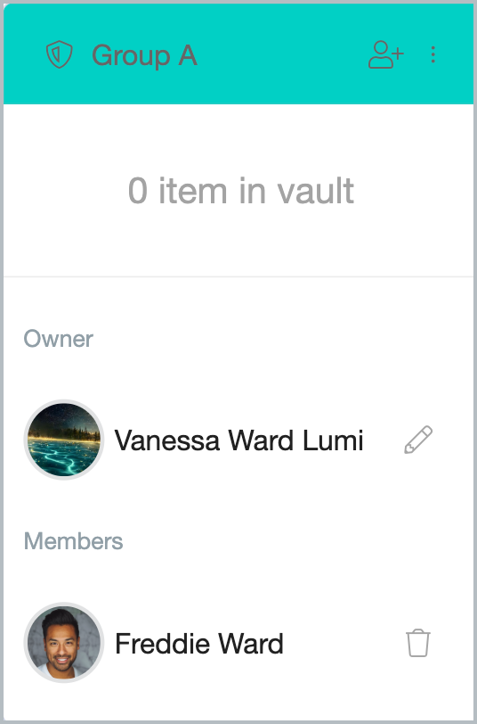 In the example below, I am the vault owner, and I have just given Freddie access to "Group A" vault.