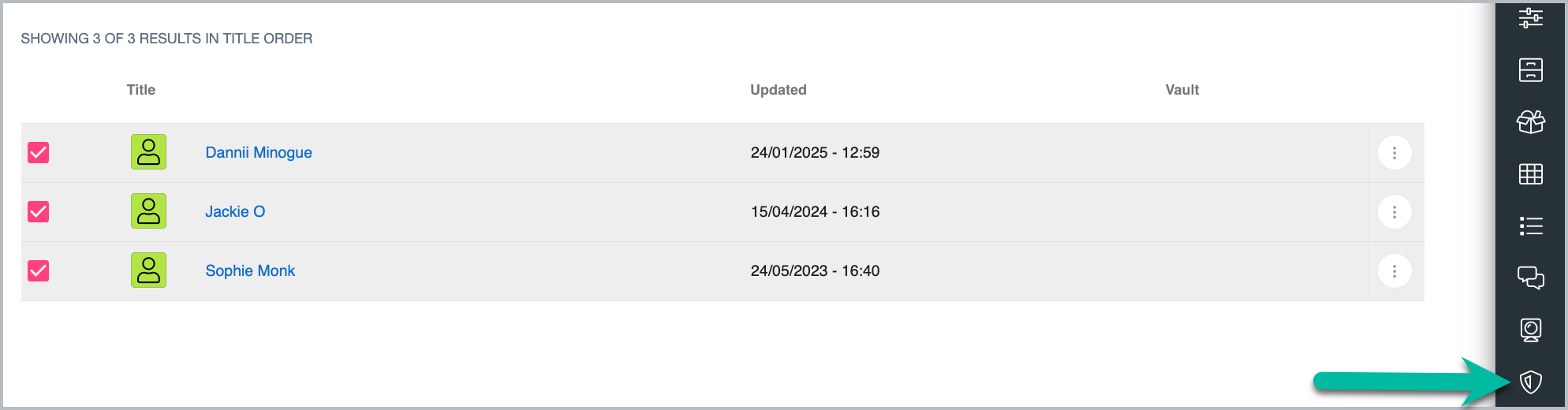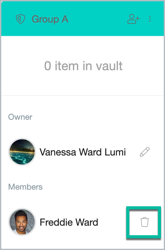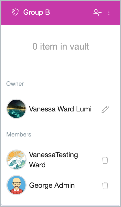 To remove a user from a Vault, simply press the bin icon next to their name.