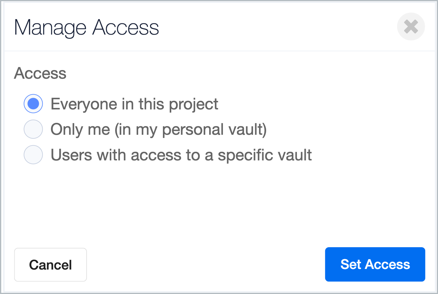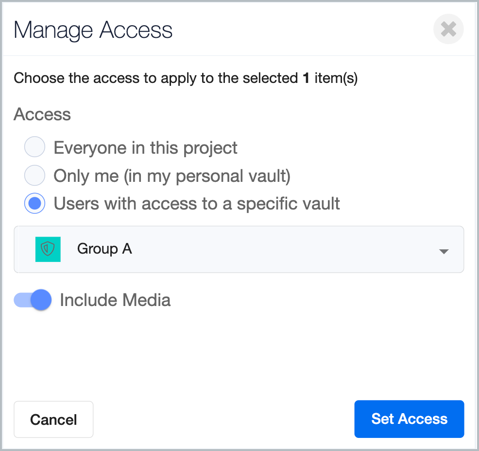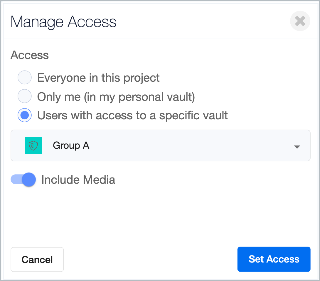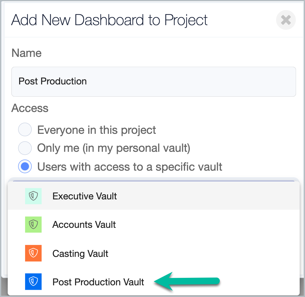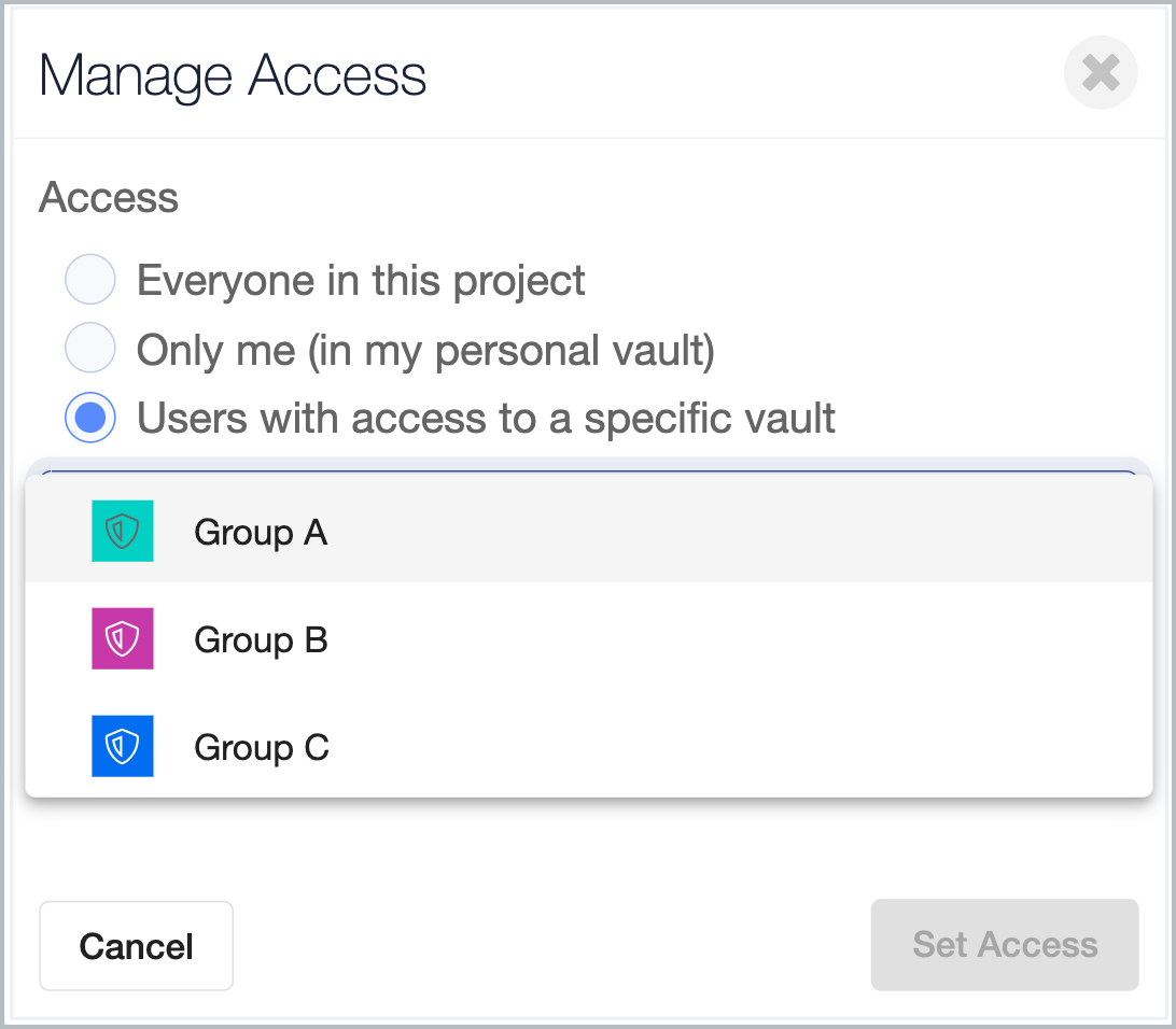 If you selected "Users with access to a specific vault", and there is more than one team vault for the project, select the relevant vault from the dropdown menu.