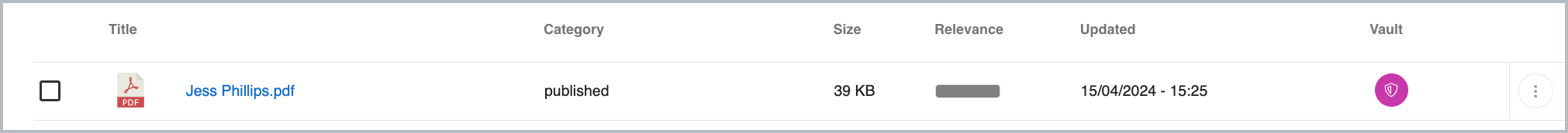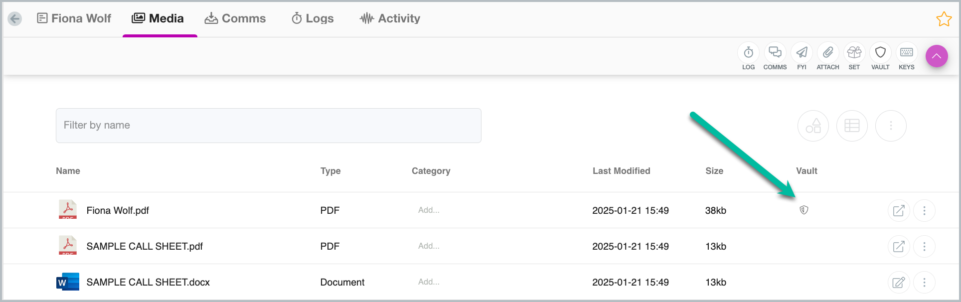 The file is now vaulted and will display the vault icon wherever it appears in the Project.