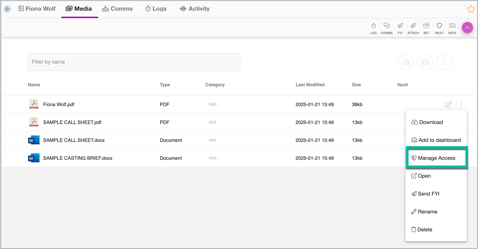 2. Click the three dots next to the media you want to restrict, and select "Manage Access".