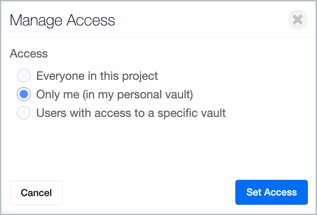 5. Select "Only me" for your private vault, or "Users with access to a specific vault" to select a team vault.