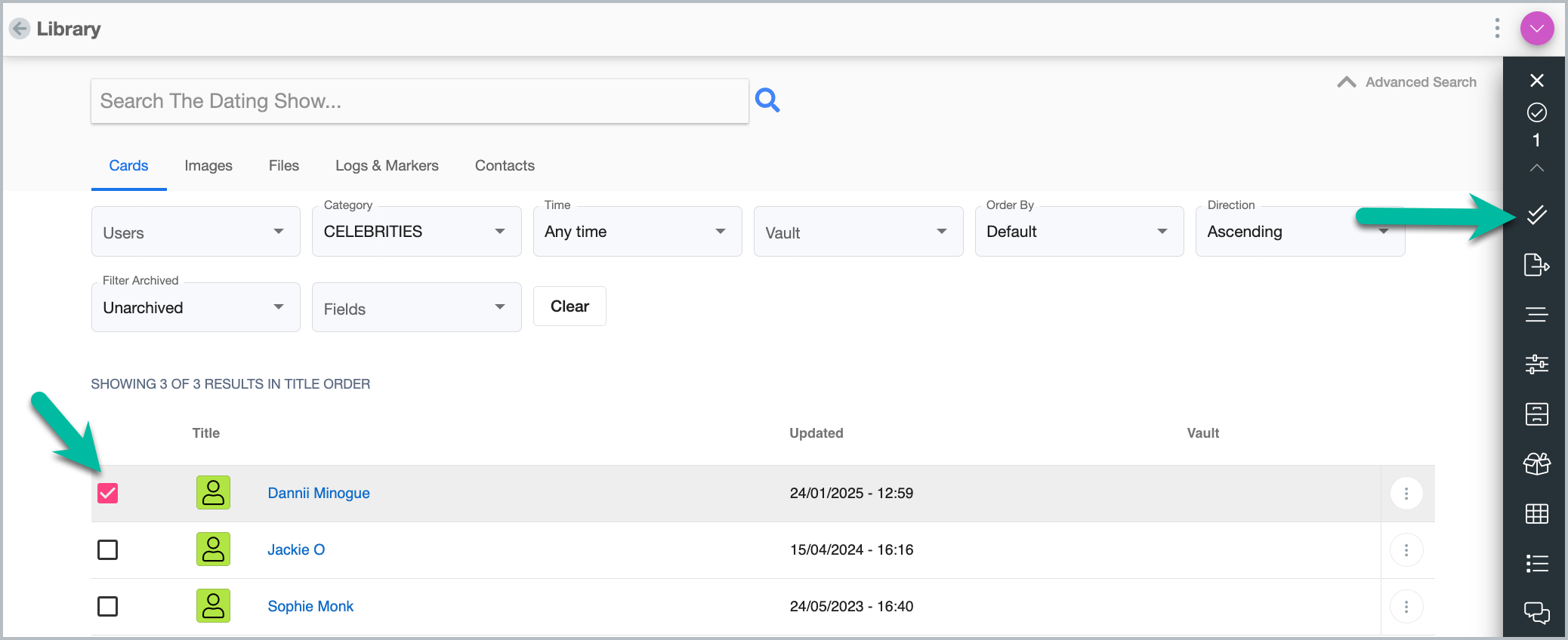 Note, any existing Cards for this Category will not be vaulted. You can bulk add them to the vault in the Project Library. See "Add Multiple Items to a Vault".