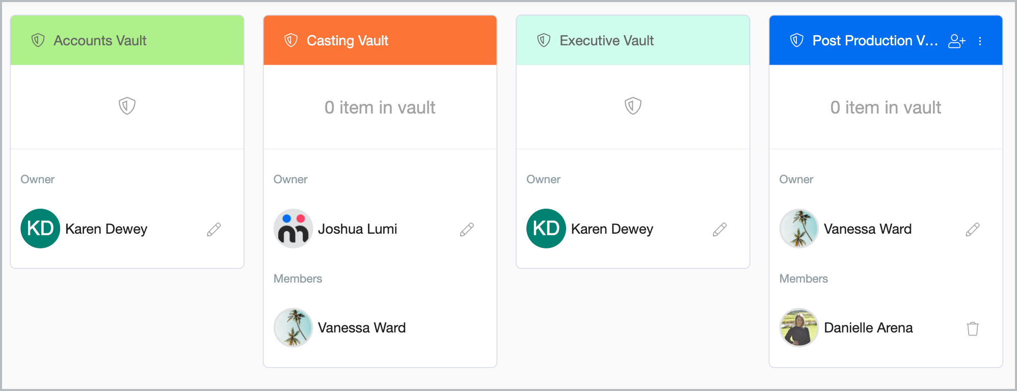 Note, only the vault owner can edit, add users, remove users or delete the vault.