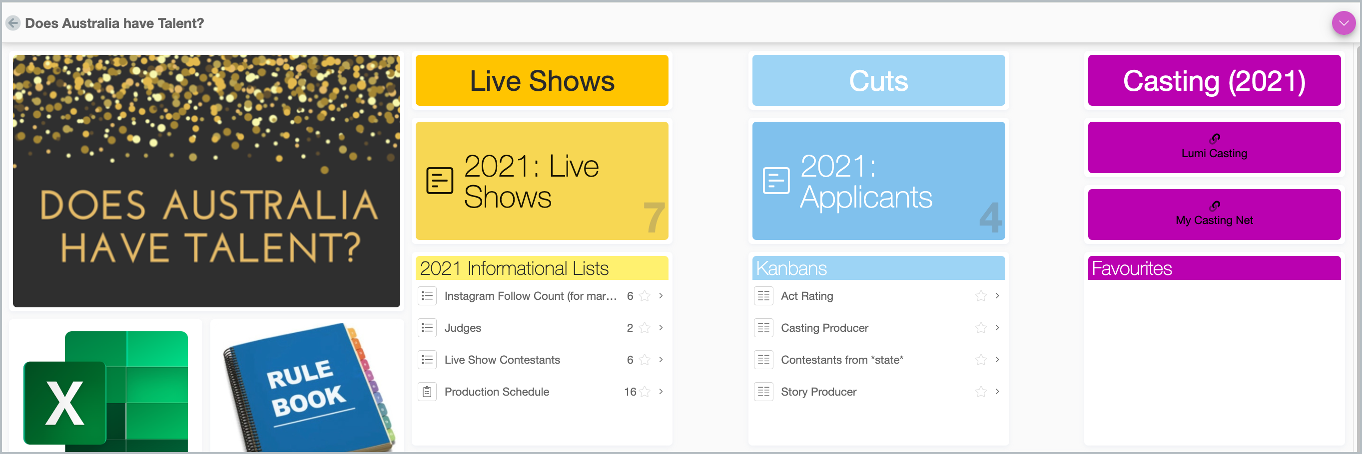 For example, you can create a different Dashboard for Executives, Accounts, Casting, Post-Production, etc, displaying all the information pertinent to them front and centre.