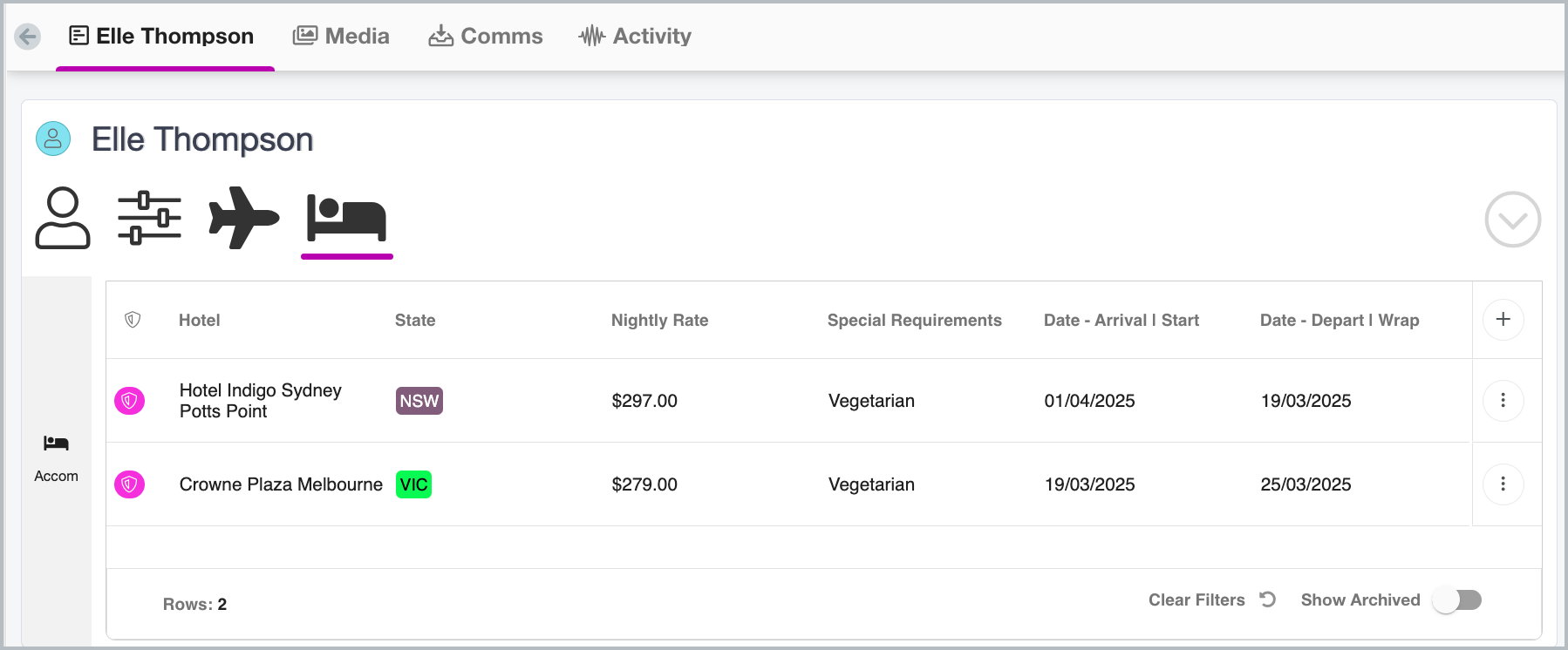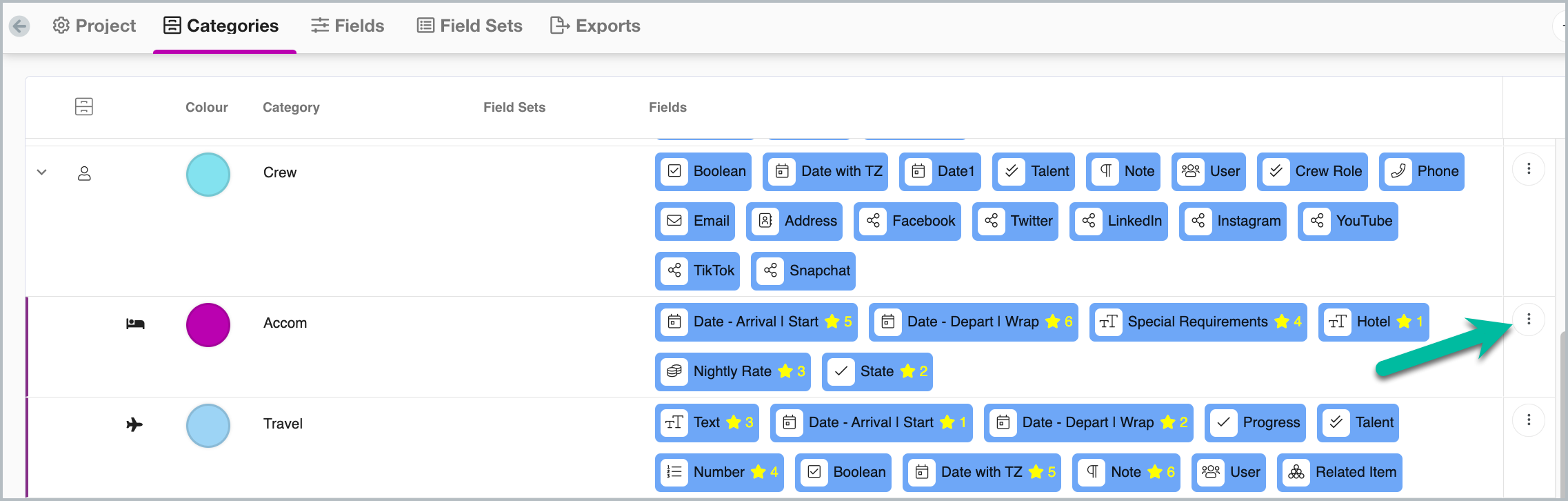 In the example below, Crew Category has the Sub-Categories "Accom" and "Travel". I will vault the "Accom" Sub-Category to a team vault called "Team A".
