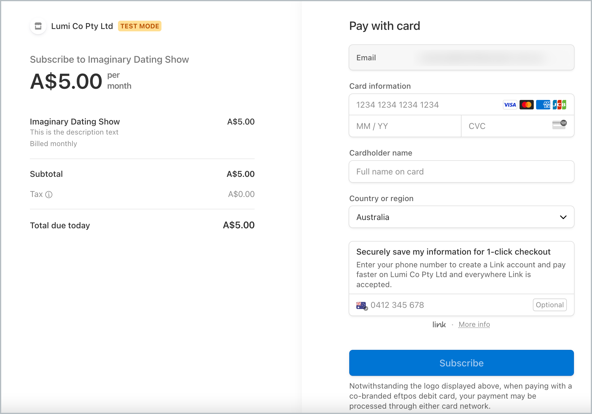 Once they have entered their payment information and clicked "Subscribe" again, they will be taken to the "Thank you" page.