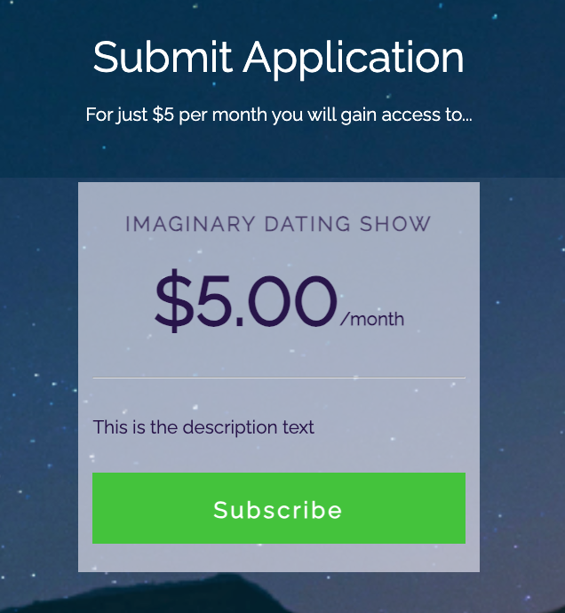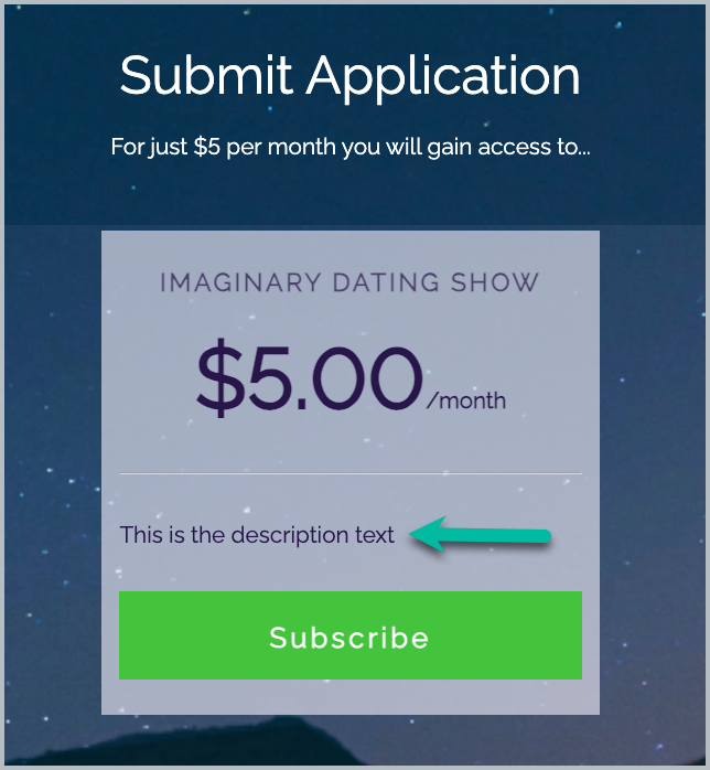 Page Text: Enter your desired text for the submit payment page. For example, "For just $5 per month you will gain access to...".