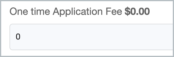 One time Application Fee: If you want to remove the one-time fee, enter "0" (zero). You cannot leave the field blank or the application will not save. You can elect to have both a one-time fee and a subscription fee.