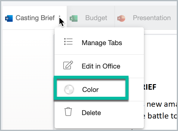 Open your Card and select the tab that you want to colour. The three dots (action menu) will display on the selected tab.